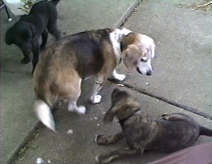 A few months later, when the puppies were about 4 months old, my sister asked me to take care of them. I was the one with the most experience raising puppies, having gone through it with my beagle, Joanna. So I brought the puppies to New Jersey. Over the next few months, I dealt with the house breaking, the puppy destructiveness and took them to their first obedience class. I enlisted a friend to work with one dog in class while I worked with the other. Phyllis was the more outgoing of the two, plus Fagin was the one I was most attached to. So my friend worked with Phyllis while I worked with Fagin. At home, I practiced what we learned in class with both of them. I also taught them how to play fetch. Little did I know this would lead to Fagin being a tennis ball fanatic! I really didn't know much about dog training, although I thought I did. As the puppies grew into large dogs and given the fact that it was just me, working full time, I reached a point where I was overwhelmed by them. This led me to the worst decision I ever made for Phyllis and Fagin. I sent them off to a dog trainer for a couple of weeks. I didn't realize it at the time, but that trainer used coercive methods. When the puppies came home, they were better behaved, but their self confidence and exuberance for life had been diminished by the experience.